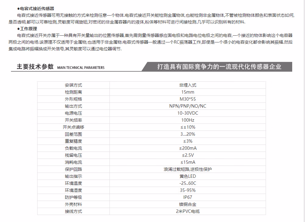M30埋入耐高温电容式接近开关